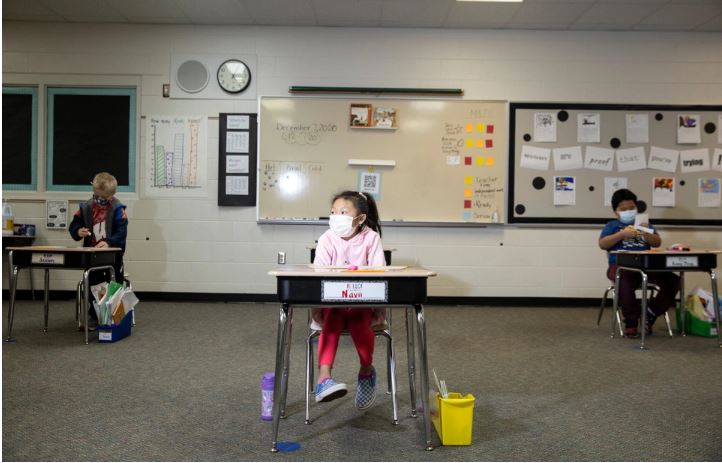 Một lớp hai tại trường tiểu học G.D. Jones ở bang Wisconsin, Mỹ. Ảnh: New York Times.
