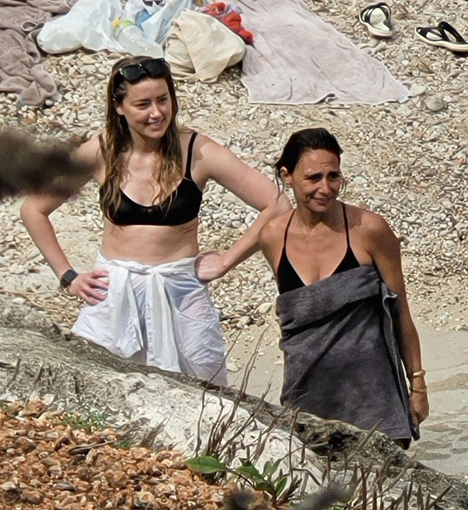 Amber Heard trên bãi biển ở Mallorca, Tây Ban Nha cùng một người bạn. (Ảnh: Deadline).