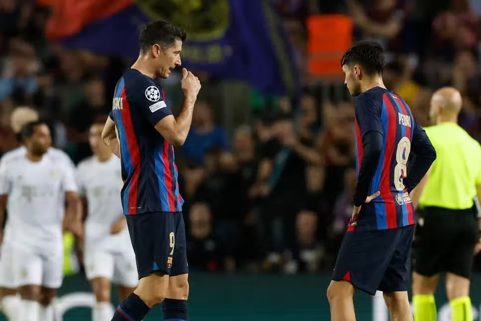 Lewandowski và Pedri trong trận Barca thua Bayern 0-2 ngày 26/10. Ảnh: Reuters