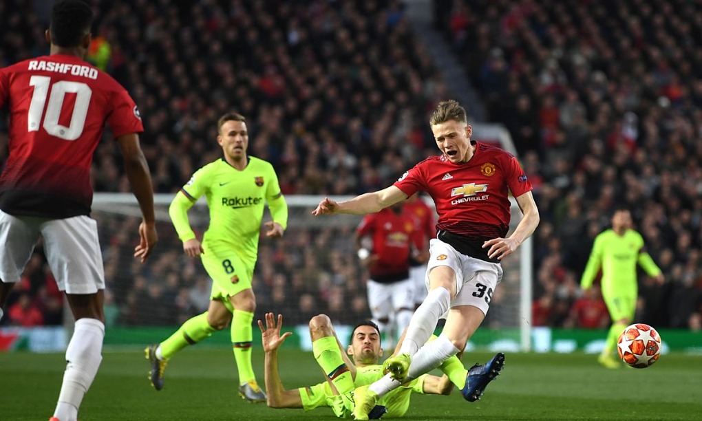 Barca (xanh) từng đánh bại Man Utd với tổng tỷ số 4-0 ở tứ kết Champions League 2018-2019. Ảnh: AFP.