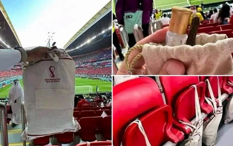 Bên cạnh thưởng thức những tiết mục nghệ thuật hoành tráng và ý nghĩa, người hâm mộ đến sân Al Bayt theo dõi lễ khai mạc và trận mở màn World Cup 2022 giữa Qatar và Ecuador còn nhận thêm niềm vui. Khoảng 60.000 túi quà được ban tổ chức đặt hoặc treo sẵn ở mỗi ghế ngồi nhằm dành tặng cho tất cả khán giả.