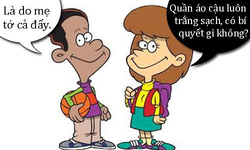 - Tớ thấy dạo này quần áo cậu luôn trắng sạch tinh tươm, có bí quyết gì không?