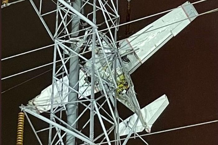 Chiếc máy bay vướng vào đường dây điện cao thế, đáng chú ý là phi công và hành khách vẫn sống sót nhưng họ bị mắc kẹt trong chiếc phi cơ treo lơ lửng trên không.