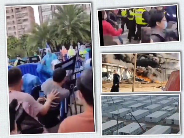 Tại Trịnh Châu, các công nhân của Foxconn vốn là công xưởng sản xuất Iphone lớn nhất thế giới, công nhân đã tràn ra đường vì những khoản tiền thưởng đã hứa nhưng không được thực hiện cũng như phản đối điều kiện sống và làm việc không thể chịu đựng được do chiến lược zero Covid. Tại Quảng Châu, Vũ Hán, Nam Kinh, Bắc Kinh… các lý do đều tương tự.