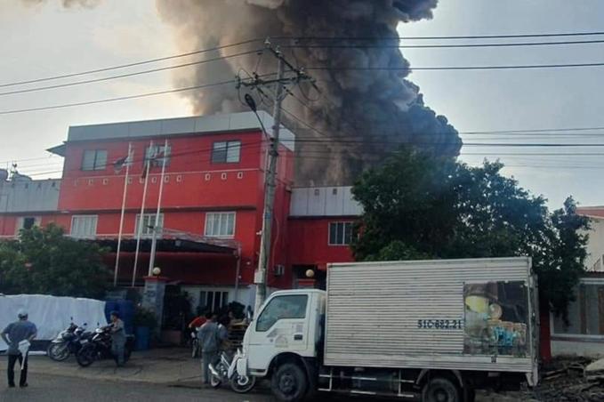 Trước đó, khoảng 7h45 cùng ngày, ngọn lửa bùng phát tại một công ty ở đường số 6 trong khu công nghiệp. Do công ty làm về hạt nhựa nên ngọn lửa nhanh chóng bùng phát.