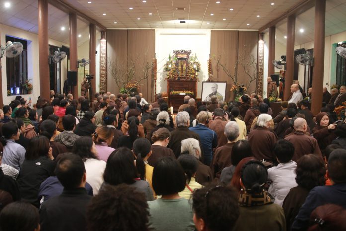 Tối 9-1, hàng trăm tăng ni, phật tử ở trong và ngoài nước đã tập trung về tổ đình Từ Hiếu (Thành phố Huế) – nơi diễn ra lễ Tiểu Tưởng (giỗ đầu) của thiền sư Thích Nhất Hạnh.