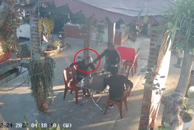Theo người quay clip, bối cảnh của vụ việc là ở một tỉnh phía Nam (với thời tiết nắng nóng), trong một quán café vườn. Thời điểm xảy ra vụ việc khoảng 16h16′ chiều 24/12, khi trong quán café có 3 người đàn ông đang “nói xấu” nhau. Cụ thể, người đàn ông ngồi bên trái (màn hình camera giám sát) liên tục dè bỉu bạn (người đội mũ cối đang đứng hút thuốc lào) về vấn đề không đẻ được con trai, sau này không có đứa chống gậy.