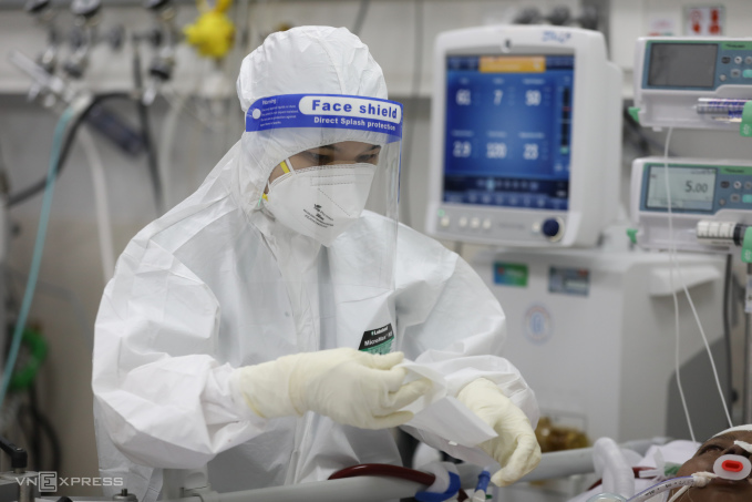Bác sĩ điều trị, chăm sóc người mắc Covid-19 tại Trung tâm hồi sức Covid-19 ở Bệnh viện Ưng Bướu TP HCM (TP Thủ Đức), tháng 9/2021. Ảnh: Quỳnh Trần