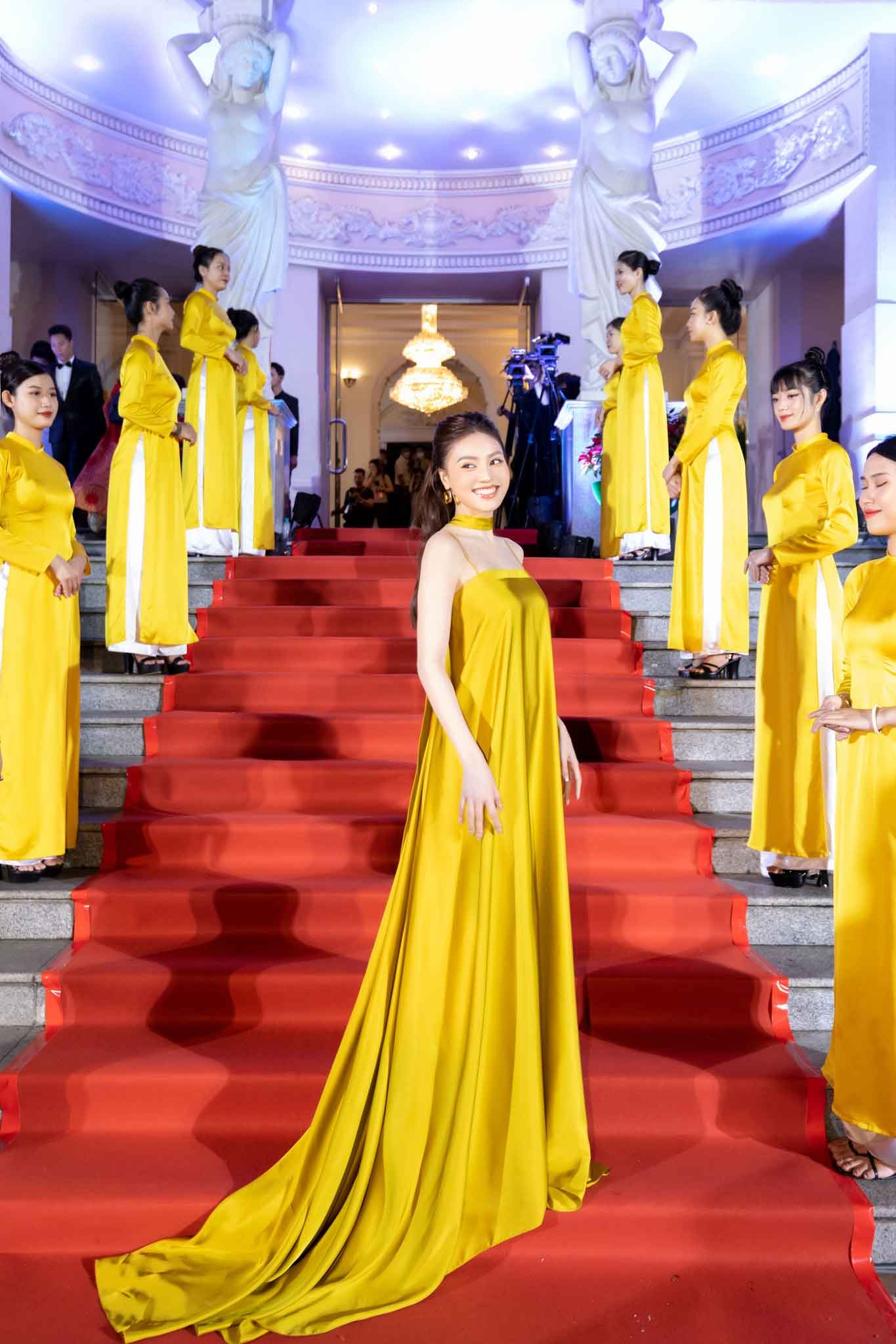 Mới đây, nữ diễn viên Ninh Dương Lan Ngọc xuất hiện tại một sự kiện và nhanh chóng gây chú ý. Cô diện chiếc váy lụa màu vàng, có thiết kế đơn giản với phần cúp ngực và 2 dây mảnh. Tuy nhiên, chiếc váy quá rộng và thướt tha khiến “vợ bầu trăm tỷ của Trấn Thành” bị che đi vóc dáng, thậm chí có người còn ví von rằng, người đẹp như đang diện mảnh vải lụa.