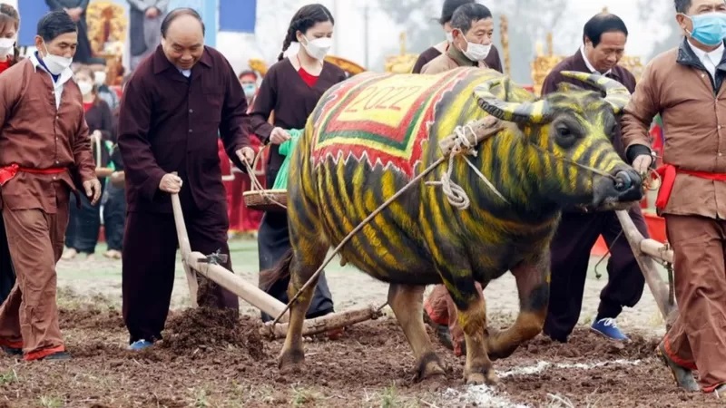 Mới dịp Tết năm ngoái, ông Nguyễn Xuân Phúc là Chủ tịch nước, dự lễ tịch điền Đọi Sơn 2022 hôm 07/02