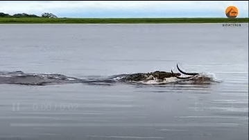 Trong clip, một con linh dương đồng cỏ đang bơi ngang qua sông thì một con cá sấu nổi lên từ mặt nước đuổi theo nó. Nhận thấy nguy hiểm, con linh dương lập tức bơi nhanh hơn. Lúc này, con cá sấu cũng tăng tốc để đuổi theo con mồi.