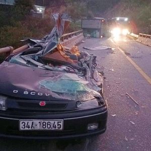Hậu quả, anh T và con trai 18 tuổi tử vong tại chỗ, vợ và con nhỏ hai tuổi bị thương. Tại hiện trường, chiếc xe ô tô của T bị đè bẹp, đội cứu hộ phải mất hơn một giờ mới đưa được hai thi thể ra ngoài.