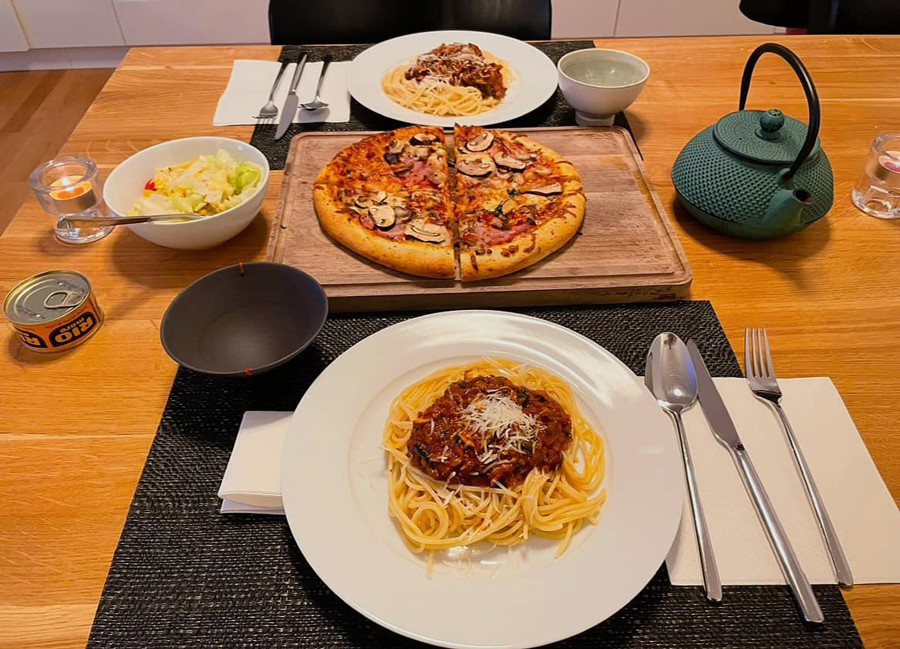 Ngoài bữa cơm chính, anh sẽ đổi món bằng mỳ, lẩu, pizza hay bánh mì, bánh bao... để giúp vợ ăn uống ngon miệng hơn. Nếu mỗi bữa ăn còn dư đồ, anh cẩn thận bọc lại bằng giấy bạc, để tủ lạnh và chỉ sử dụng trong 24h chứ không để quá lâu.