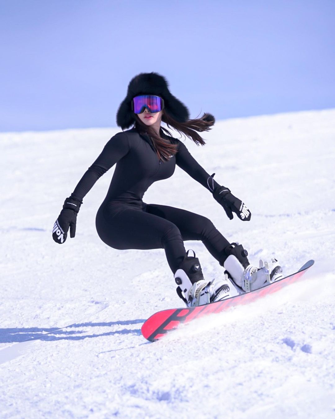 Mới đây, cô có đăng ảnh đi trượt tuyết. Người đẹp diện thiết kế thể thao màu đen kết hợp với mũ lông và kính mắt. Trang phục này đơn giản, màu sắc cũng không sặc sỡ nhưng vẫn giúp Song Yu Xin trở nên nổi bật. Trong khi một số người lúc chụp ảnh với tuyết thường theo trào lưu diện đồ bơi, trang phục mỏng thì Song Yu Xin lại diện kín đáo.