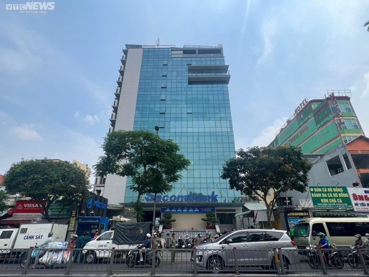 Hàng chục cảnh sát đang có mặt để phong toả, khám xét trụ sở Công ty F88 đặt tại toà nhà Văn Phôn Tower (quận Gò Vấp, TP.HCM).