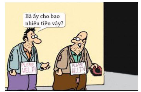 Thấy trước cửa có hai người ăn mày tội nghiệp quá, bà ta liền dúi vào tay anh ta và nói nhỏ: