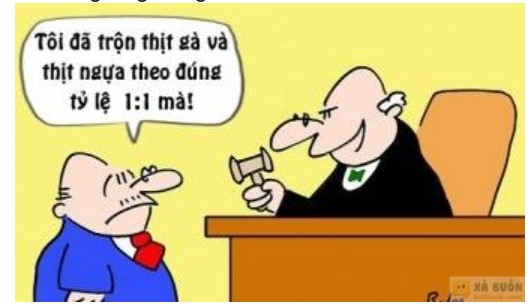 - Vâng thưa ngài, nhưng tôi đâu có lừa dối ai. Rõ ràng trên bao bì tôi có ghi là hỗn hợp thịt gà và thịt ngựa, tỷ lệ 1:1 mà.