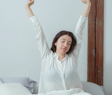 Hành động bật dậy ngay khi vừa thức giấc có thể làm khí huyết tăng cao, dẫn đến chóng mặt, hoa mắt. Thay vào đó, bạn có thể vươn vai vận động nhẹ nhàng trên giường trước để thúc đẩy quá trình lưu thông mới và ổn định tinh thần bắt đầu ngày mới.