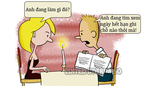 - Ồ không có gì đâu em yêu, anh chỉ đang tìm xem ngày hết hạn ghi chỗ nào thôi mà!