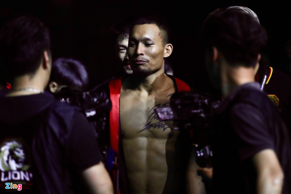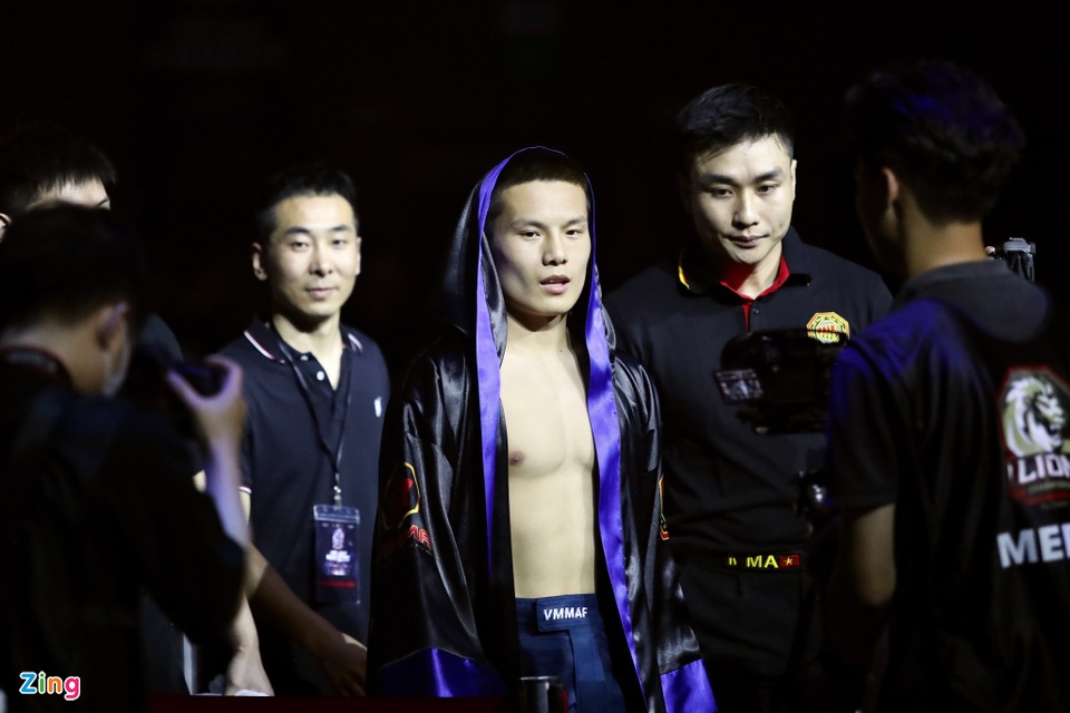 Trần Quang Lộc tự tin bước ra sàn đấu trong trận đánh biểu diễn ở ngày khai mạc Lion Championship 2023. Anh đã hỏi bạn bè ở Trung Quốc để nghiên cứu kỹ đối thủ có biệt danh "Rồng Trung Hoa".