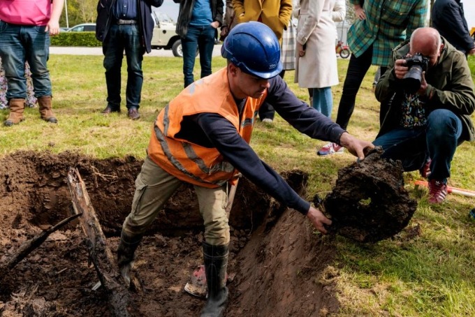 Một địa điểm tại làng Ommeren được các chuyên gia khảo cổ cho đào tìm kho báu vào ngày 1/5, song họ chỉ tìm thấy gỗ mục. Ảnh: AFP