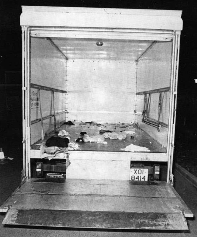 Chiếc xe tải được những người vượt ngục sử dụng để chạy trốn.