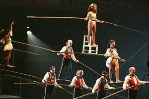 Tháng 5/2014, 8 nghệ sĩ biểu diễn màn nhào lộn ở Providence, Rhode Island trước mặt 3.000 khán giả. Họ tạo thành một chiếc đèn chùm hình người, tất cả đều được treo bằng tóc từ một chiếc vòng tròn. Đột nhiên chiếc dây cố định vòng tròn thép bị gãy khiến cả 8 người rơi xuống đất từ độ cao 4,6-6,1m.