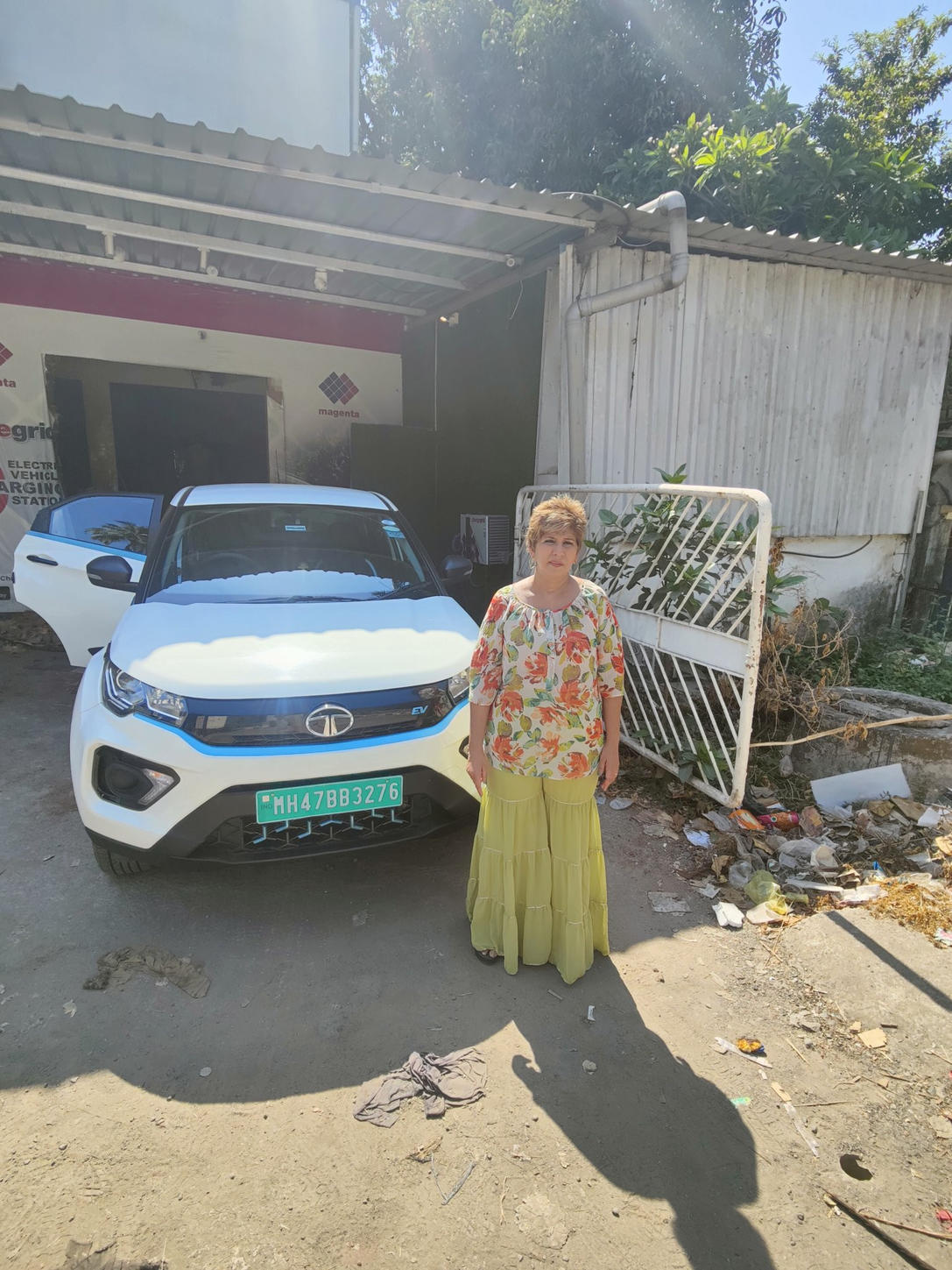 Carmelita Fernandes bên chiếc Tata Nexon EV của mình. (Ảnh: Cartoq)