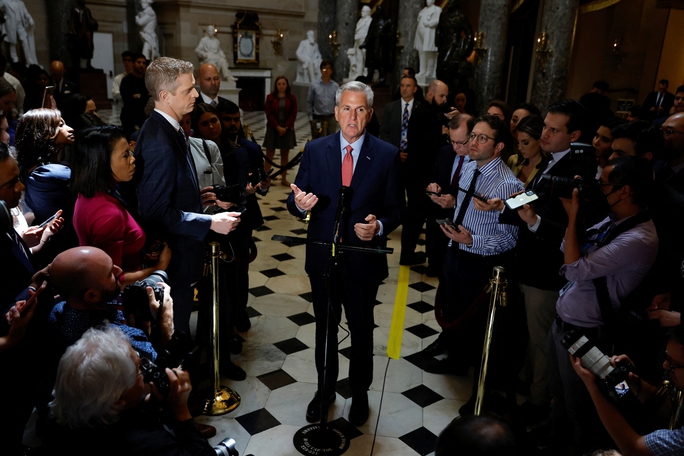 Chủ tịch Hạ viện Mỹ Kevin McCarthy trả lời giới truyền thông tại thủ đô Washington hôm 24-5. Ảnh: REUTERS