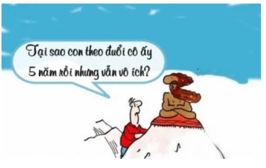 - Thưa ngài, con đã kiên trì theo đuổi cô ấy suốt năm năm trời. Vì sao đến nay cô ấy vẫn chưa đồng ý?