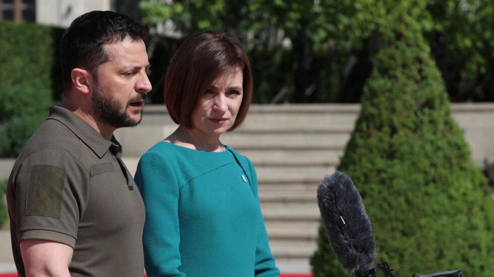 Tổng thống Ukraina Volodymyr Zelensky và tổng thống Moldova Maia Sandu tại Chisinau, Moldova, ngày 01/06/2023. REUTERS - VLADISLAV CULIOMZA