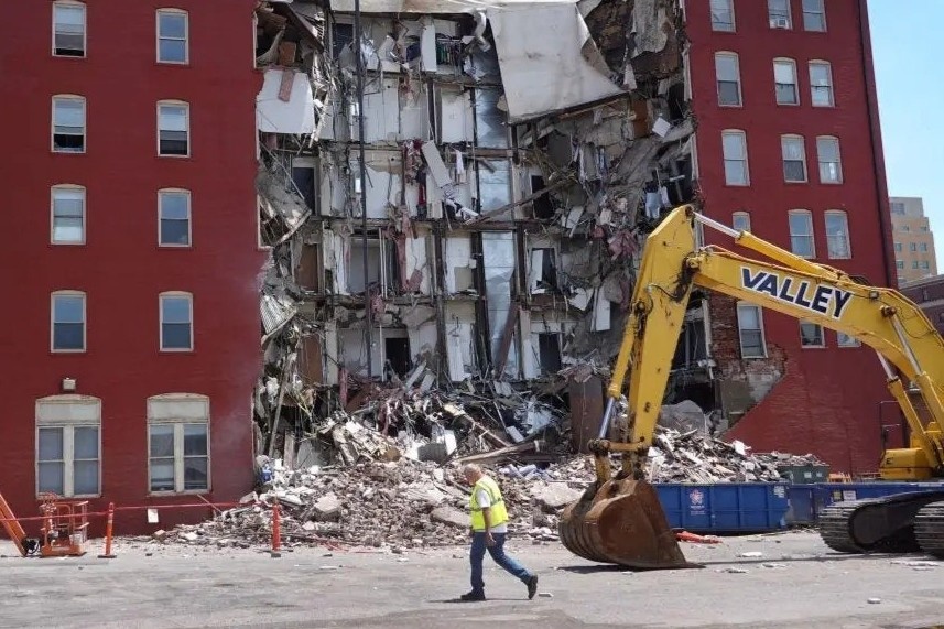 Tòa nhà 6 tầng bị sập ở Davenport vào ngày 29/5. Ảnh: Scott Olson.