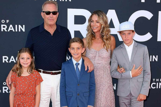 Gia đình Kevin Costner (thứ hai từ trái sang) ra mắt phim "The Art of Racing in the Rain", năm 2019. Ảnh: WireImage
