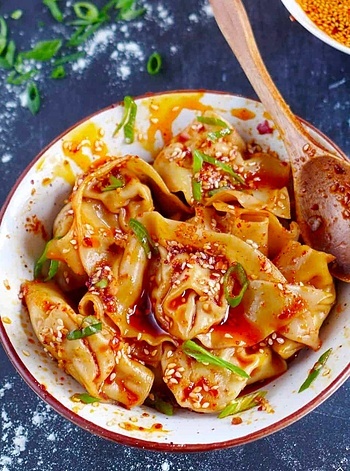 Hoành thánh sốt cay, đặc sản của tỉnh Tứ Xuyên, Trung Quốc. Ảnh: Redhousespice