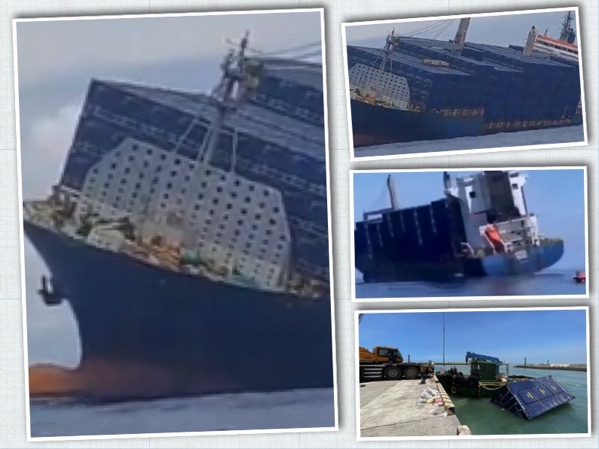 Tàu container #ANGEL tại khu neo đậu #Kaohsiung (Cao Hùng, Đài loan) bị lật và chìm vào sáng 21/7, để lại trên mặt nước hàng trăm container nổi. Tất cả 19 thủy thủ đoàn, họ đã được sơ tán đến cảng.