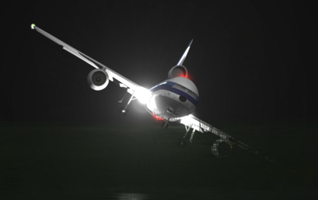 Đèn nhấp nháy rồi tắt, cabin tối đen. Kim loại va vào nhau phát ra âm thành chói tai. Chiếc L-1011 trượt dài hàng trăm mét. Nhiên liệu tràn bình và lửa bắt đầu bùng lên.