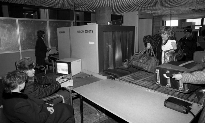 Kiểm tra hành lý của hành khách tại sân bay Vnukovo năm 1991. Ảnh: TASS