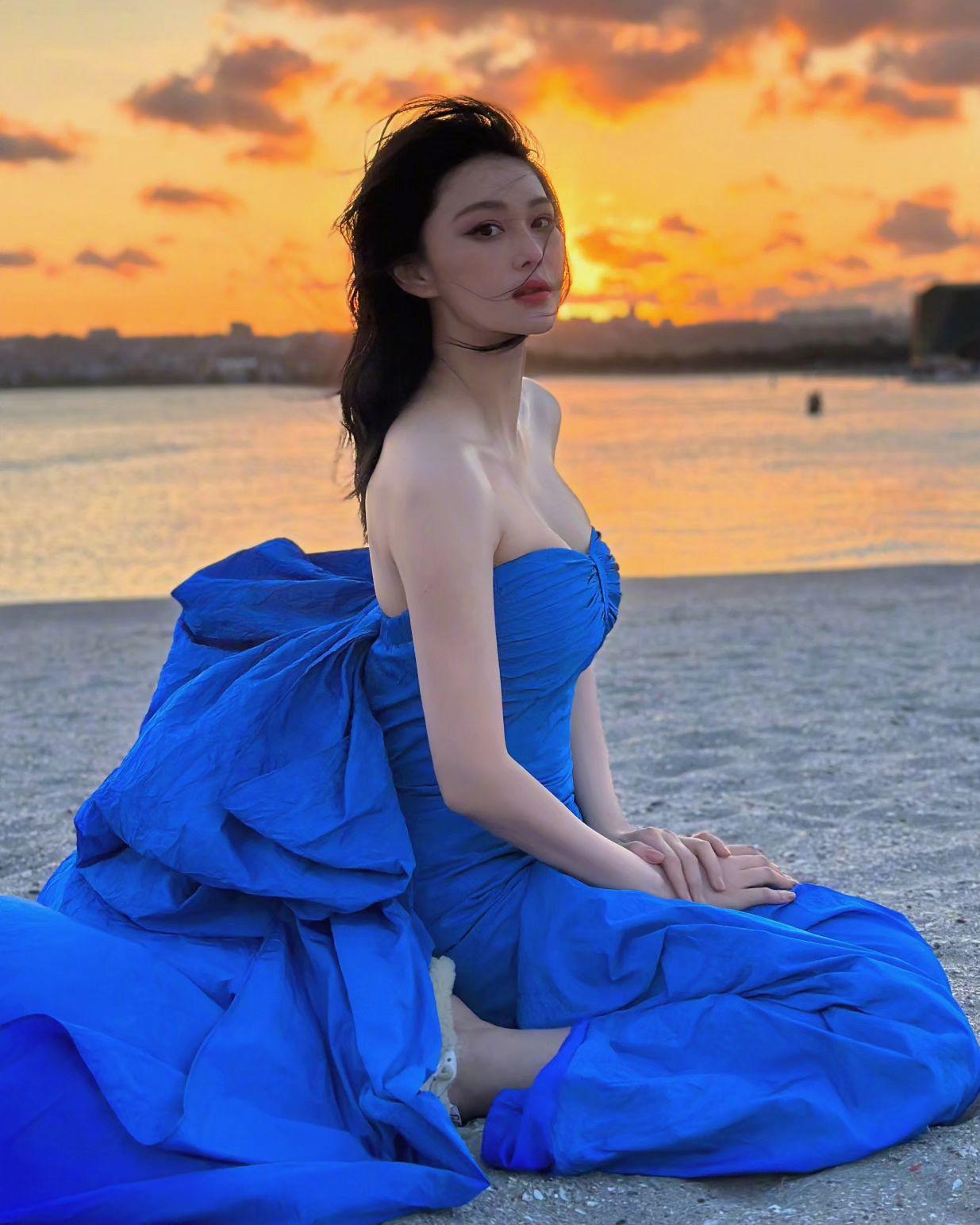 Hình ảnh Trương Hinh Dư diện váy quây, khoe vóc dáng đẹp trên bãi biển nhanh chóng thu hút gần 10.000 lượt yêu thích trên trang Weibo cá nhân. Cô khéo léo lựa chọn chiếc đầm màu xanh biển, với chi tiết thắt nơ to bản ở phía sau, tôn bờ vai mảnh mai cùng xương quai xanh quyến rũ. Đây cũng là hình ảnh diện trang phục hở hiếm hoi của Trương Hinh Dư kể từ sau khi cô kết hôn với chồng quân nhân - Hà Tiệp.