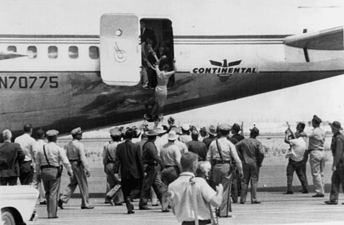 Các hành khách được hai không tặc cho xuống máy bay, sau khi thỏa thuận giữ 4 người cùng phi hành đoàn ở lại làm con tin. Ảnh: Continental Airlines History