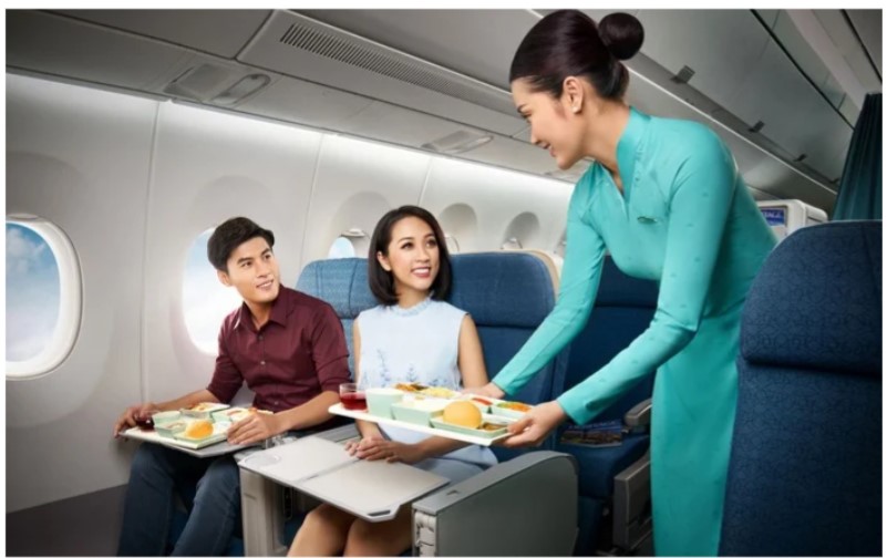 Tiếp viên hàng không đang phục vụ khách. (Ảnh: Tạp chí Hàng không)