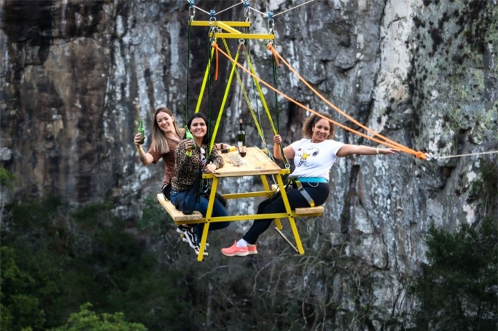 Đến đây, du khách có thể chọn cho mình trải nghiệm trên cáp: nằm võng, thưởng thức tiệc rượu, ăn trưa hoặc uống cà phê, chơi xích đu, và tất cả đều nằm ở độ cao 50 m, cung cấp tầm nhìn và trải nghiệm có một không hai.