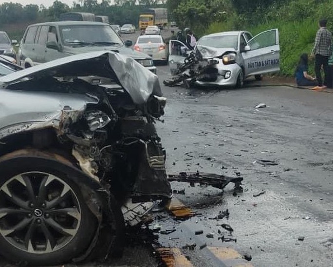 Vụ tai nạn xảy ra vào khoảng 16 giờ 30 phút ngày 17-9, trên đường Hồ Chí Minh (đoạn qua xã Thuận An, huyện Đắk Mil, tỉnh Đắk Nông) giữa 2 xe con.