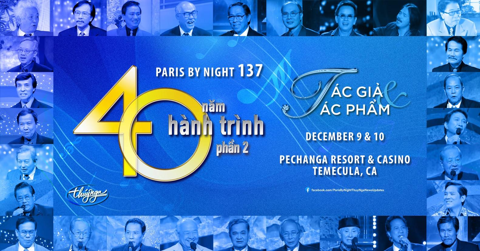 Như lời tiết lộ trong post của giám đốc Marie Tô, chương trình Paris By Night 137 dự định sẽ thu hình vào ngày 9 & 10 tháng 12 sẽ mang chủ đề "Tác Giả Tác Phẩm" cùng với chủ đề chính là "Hành Trình 40 Năm - Phần 2."