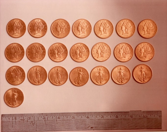 22 đồng tiền vàng được kỹ sư Bell giao nộp cho FBI. Ảnh: FBI Gallery