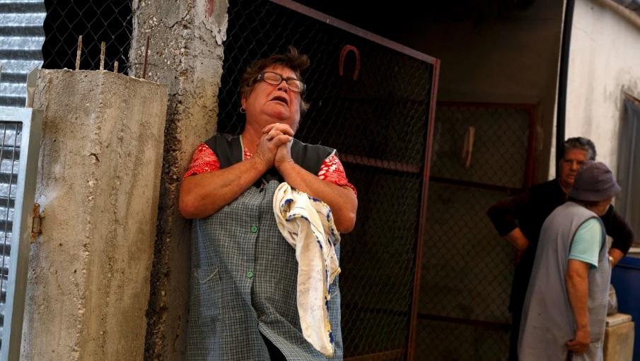 Một người phụ nữ kêu cứu khi ngọn lửa đang tiến đến gần nhà của mình trong trận cháy rừng năm 2017 tại ngôi làng gần Pedrogao Grande, Bồ Đào Nha. Ảnh: AFP