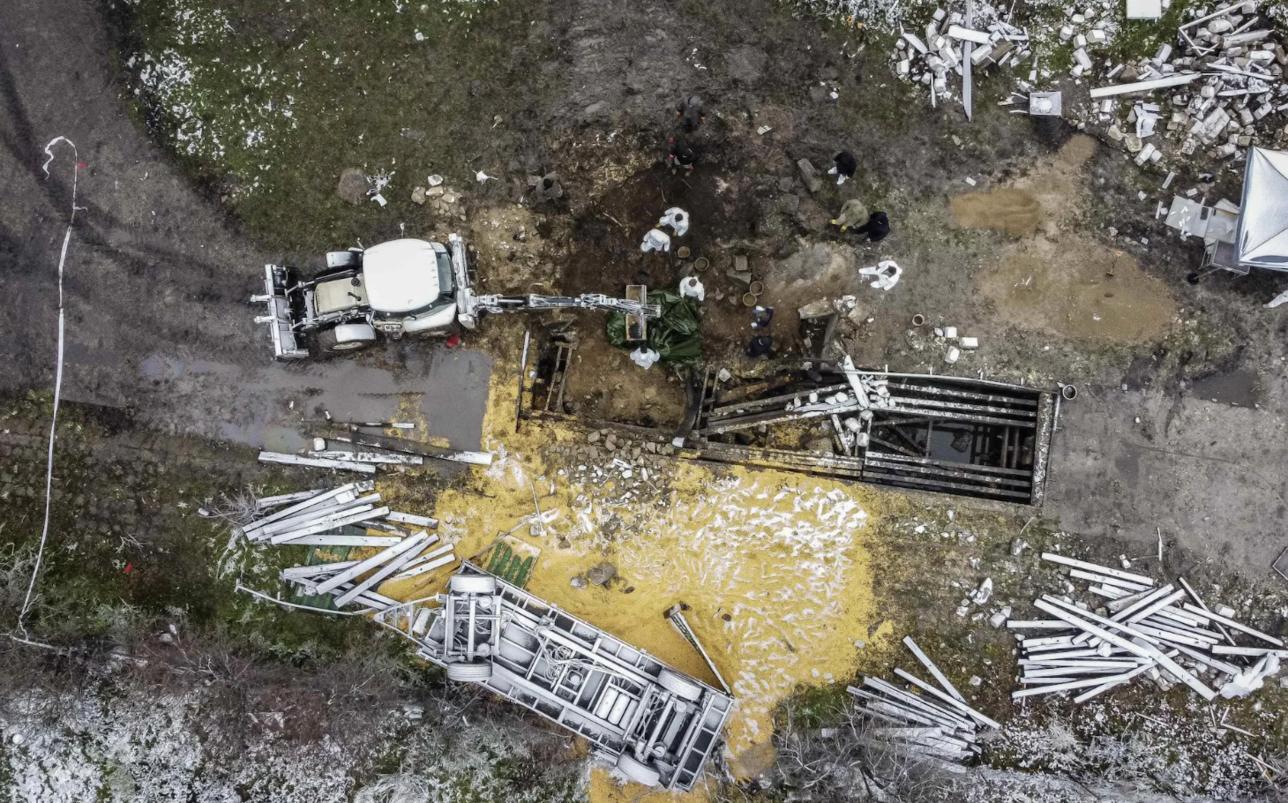 Ảnh chụp từ trên không được chụp vào ngày 17/11/2022 cho thấy hiện trường vụ tên lửa rơi xuống làng Przewodow ở phía Đông Ba Lan. Ảnh AFP