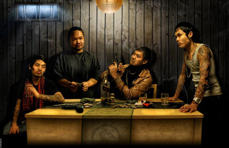 Để chứng tỏ mình là Hội Tam Hoàng, Sun Yee On không ngần ngại kéo áo lên khoe hình xăm trong một quán ăn.