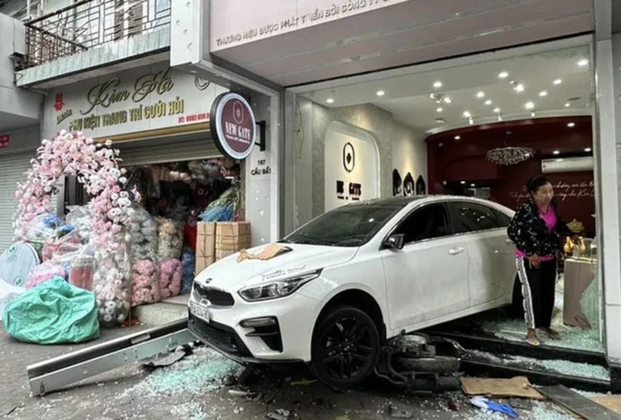 Sau đó, ôtô do nữ tài xế này điều khiển tiếp tục lao theo hướng lùi và tông thẳng vào cửa hàng trang sức Newgate (địa chỉ số 107 đường Cầu Đất, phường Cầu Đất) sâu vào 3 m mới dừng lại.