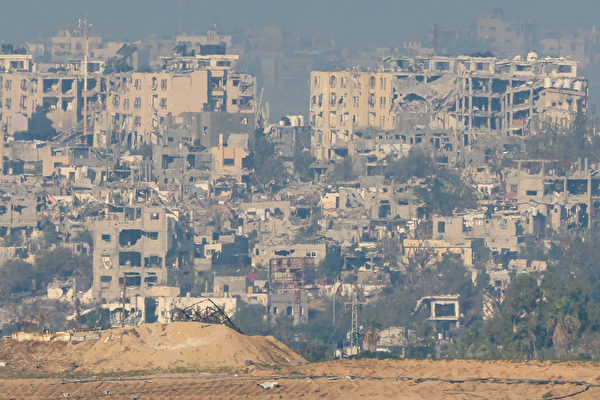 Một bức ảnh chụp từ biên giới Israel cho thấy các tòa nhà ở Dải Gaza bị hư hại nặng nề, ngày 17/11/2023. (Ảnh: JACK GUEZ/AFP/Getty Images)