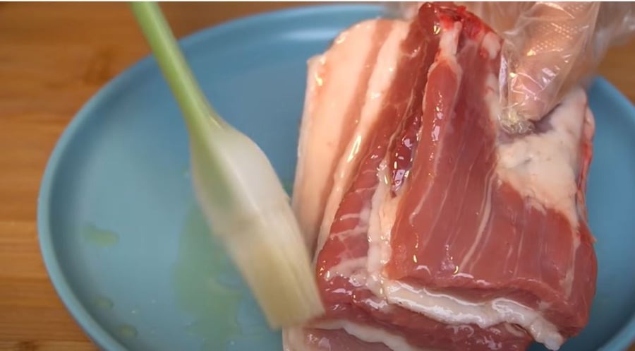 Cuối cùng thoa một lớp dầu ăn mỏng lên bề mặt miếng thịt để tăng khả năng giữ độ ẩm, tránh vi khuẩn xâm nhập vào miếng thịt. Dầu ăn sẽ giúp thịt cấp đông ít bị dăm đá, giữ được hương vị thơm ngon.